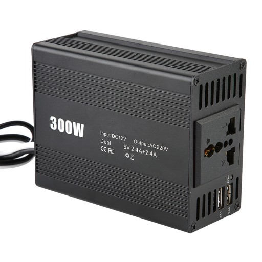 Inwerter samochodowy o mocy 300 W może ładować jednocześnie do 4 urządzeń. Możesz użyć 2 portów USB i 2 gniazdek prądu zmiennego, aby zasilić laptopa, telefon komórkowy, tablet, konsolę, po prostu podłączając je do gniazda zapalniczki samochodowej.