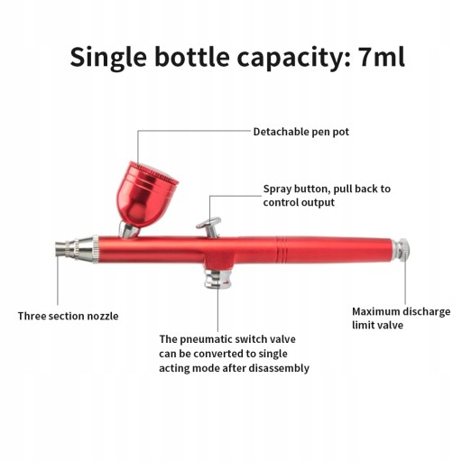 Ten aerograf z podajnikiem grawitacyjnym jest wygodny do kontrolowania i użytkowania oraz może zaoszczędzić czas podczas malowania rękodzieła.