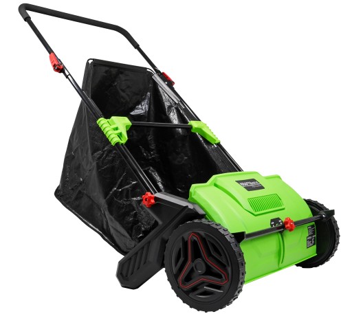 - Urządzenie wyposażone jest w pojemny 100 litrowy kosz na zanieczyszczenia. Konstrukcja kosza została stworzona z wysokiej jakości tworzywa sztucznego.