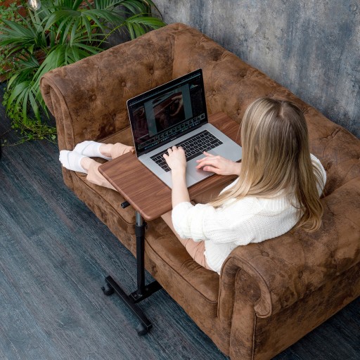 Długi blat i niezwykła konstrukcję nogi z kółkami pozwała pracować lub zrelaksować się z komfortem w łóżku.