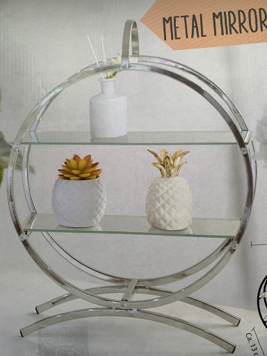 Okrągły kształt i szklane półki nadają jej wyjątkowego stylu, a sama szafka stanowi doskonałą ozdobę pomieszczenia.