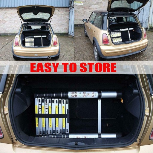 🟢 PRZENOŚNY I WYGODNY: Mocny pasek zapinający pewnie zabezpiecza drabinę i ułatwia noszenie jedną ręką. Drabinę można złożyć do przechowywania i umieścić w szafkach, za szafką lub pod łóżkiem, gdy nie jest używana. Można go również umieścić w bagażnikach samochodowych do codziennego użytku.