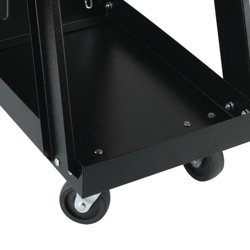 Dwuwarstwowy wózek spawalniczy MIG oferuje dużo miejsca do przechowywania przyłbicy spawalniczej, spawarki, butli z gazem, uchwytu spawalniczego i narzędzi.