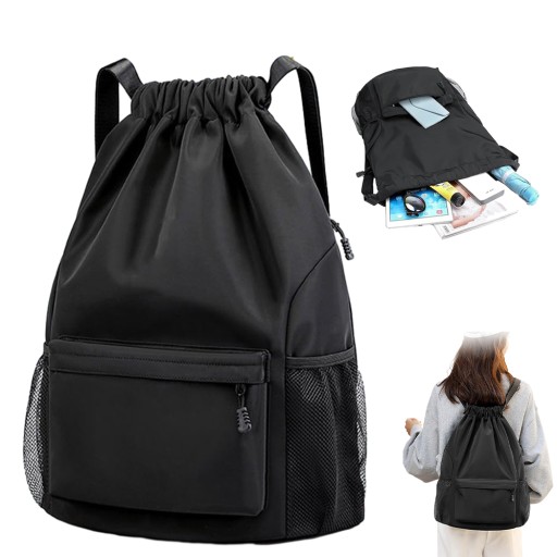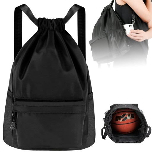 torba sportowa, wodoszczelny, ściągacz, plecak gimnastyczny, uniseks, czarny, czarny