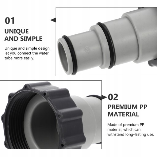 Ten adapter węża do basenu jest wykonany z najwyższej jakości materiału PP, który może wytrzymać długotrwałe użytkowanie. Zawiera najwyższej jakości materiał PP, który ma wysoką trwałość, niełatwy do odkształcenia. Dobra jakość wykonania, zapewnia praktyczność.