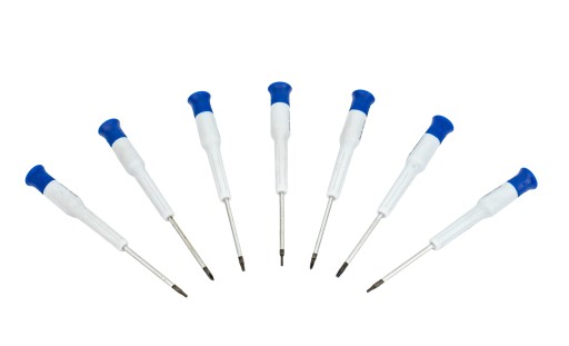 - 8 wkrętaków precyzyjnych: płaskie:2,5x50/1,5x50 krzyżowe PH00x50/PH0x50 Typu torx T6x50/T7x50/T8x50/T9x50 mm