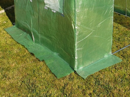 🔵 odpowiednio dłuższe brzegi foliowego fartucha (ok. 20-25 cm) pozwalają na odprowadzenie wody, a dodatkowo obciążone kamieniami czy przysypane ziemią doskonale zabezpieczają tunel przez silnymi porywami wiatru