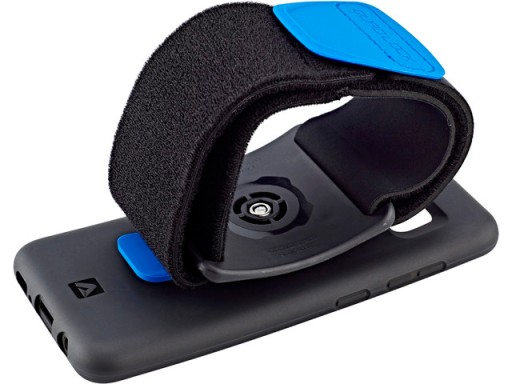 Na opasce zamontowany jest Quad Lock® - dwustopniowy zamek, który jest łatwy w obsłudze i zapewnia mocne i bezpieczne zamontowanie telefonu na opasce.