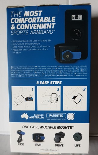 Na opasce zamontowany jest Quad Lock® - dwustopniowy zamek, który jest łatwy w obsłudze i zapewnia mocne i bezpieczne zamontowanie telefonu na opasce.