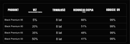 - Dzięki naszemu doświadczeniu w przyciemnianiu szyb możemy zaproponować folię o wysokich właściwościach termokurczliwości. Folia Black Premium to model folii , który cieszy się znakomitą opinią wśród aplikatorów w Polsce ze względu na pracę z folią przy bardziej wymagających szybach.