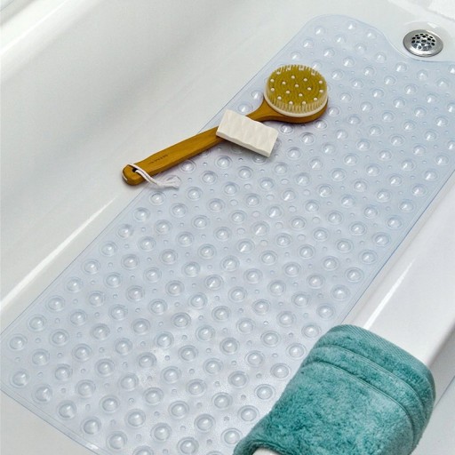 Mata antypoślizgowa znacznie zwiększy twoje bezpieczeństwo podczas kąpieli. Przyssawki od spodu maty zapewniają stabilność , a wypustki na powierzchni zapewniają komfort podczas użytkowania.