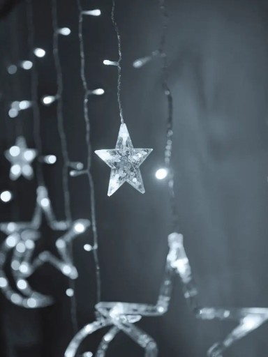 Kurtyna świetlna doskonale sprawdzi się jako wyjątkowa świąteczna dekoracja, ale lampki z motywem gwiazdek i księżyców mogą również służyć w pozostałych okresach roku, szczególnie jako niebanalne wieczorne oświetlenie pokoju dziecięcego czy klimatyczne oświetlenie salonu.