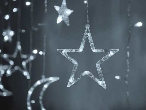 Piękna kurtyna świetlna z księżycami i gwiazdkami nada blasku każdemu wnętrzu.