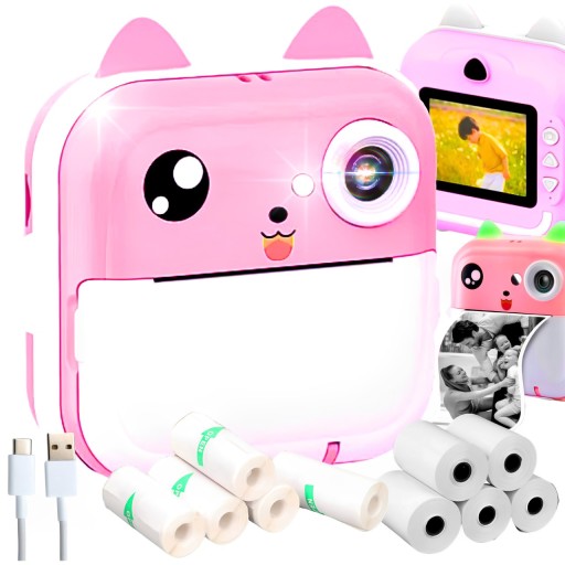 APARAT NATYCHMIASTOWY DRUKUŚ 2.0 KAMERA DRUKARKA TERMICZNA 3W1 RÓŻ+13 ROLEK