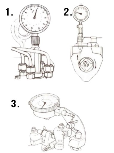 - Wykręcić śrubę głowicy pompy wtryskowej i jej miejsce zamontować odpowiednią oprawę czujnika