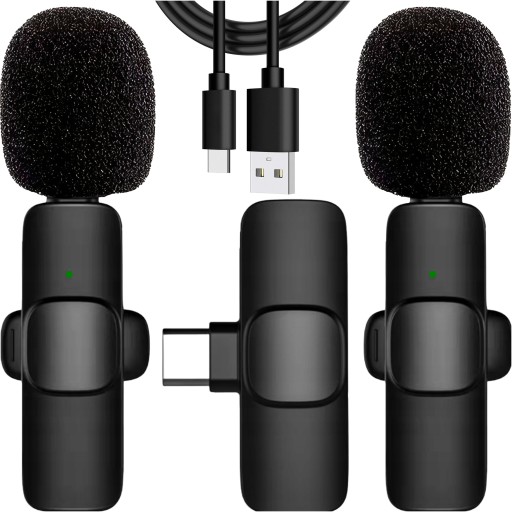 ▶️ 2x mikrofon krawatowy bezprzewodowy USB-C typ C Android iOS do telefonu tabletu małe mikrofony zestaw dwóch mikrofonów