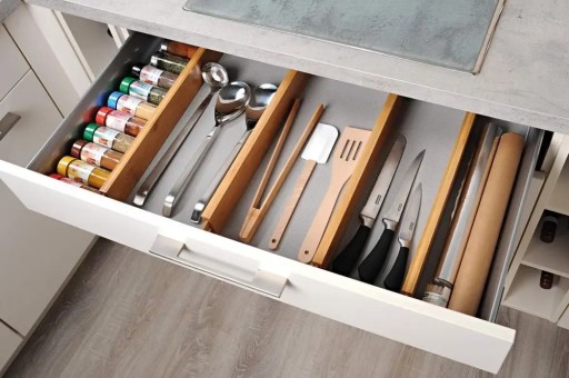 - Uniwersalne zastosowanie: Przegrody doskonale sprawdzają się nie tylko w kuchennych szufladach, ale także w innych przestrzeniach, takich jak meble łazienkowe czy biurowe. Dostosuj je do swoich potrzeb,