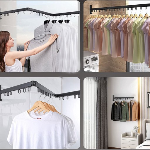 🦾WIESZAK SKŁADANY DRĄŻEK NA UBRANIA MONTAŻU NA ŚCIANIE Z DUŻA NOŚNOŚĆ CZARNY 120 CM