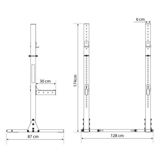 Gruba na centymetr guma na asekuracjach to luksus jeżeli chodzi o sprzęty z przeznaczeniem do siłowni domowych. Z naszym stojakiem możesz tego luksusu zaznać u siebie w domu i to w normalnych pieniądzach. Tłumią one mocne uderzenia sztangi o metal, przez co sprzęt będzie w dobrej kondycji przez lata. Serio - warto na to zwrócić uwagę.