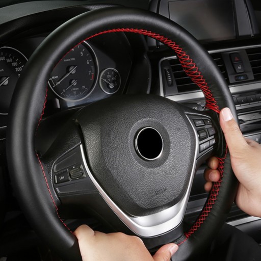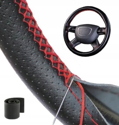 КОЖАНЫЙ ЧЕХОЛ НА РУЛЬ В СОБСТВЕННОСТЬ, ЧЕРНЫЙ КРАСНЫЙ 111СМ