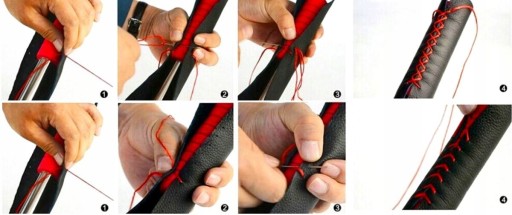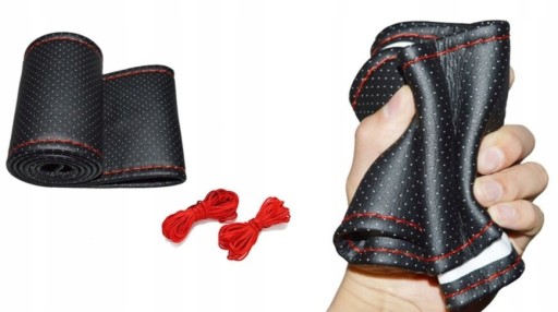 POKROWIEC SKÓRA NA KIEROWNICĘ DO WŁASNEGO OBSZYCIA CZARNO CZERWONY 111CM