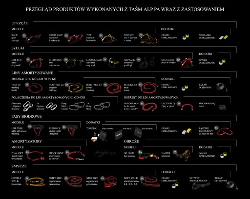Ekwipunek do psich sportów, rekreacji i turystyki, a także akcesoria codziennego użytku, oraz sprzęt specjalnego przeznaczenia.