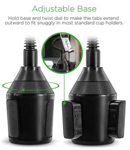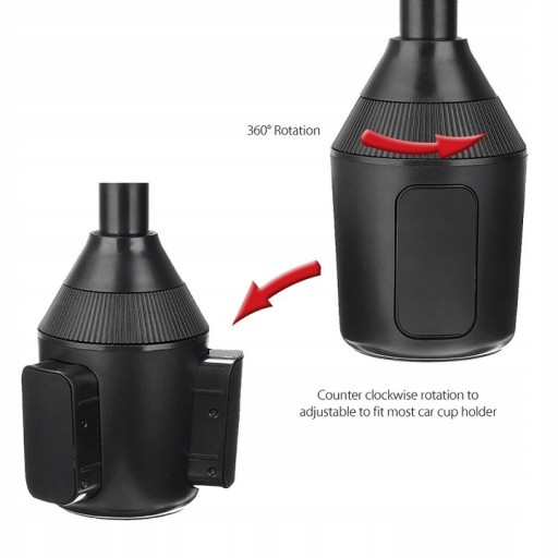 Obrót w lewo w celu regulacji, aby pasował do większości uchwytów na kubek samochodowy
