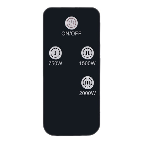 Sterowanie urządzenie odbywa się za pomocą pilota, którym włączamy, ale i zmieniamy moc urządzenia - 750, 1500 i 2000W.
