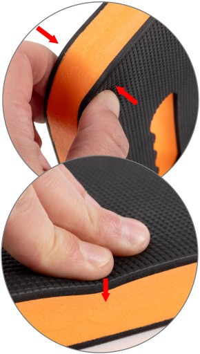 - Właściwości amortyzujące. Pianka EVA jest sprężysta, dzięki czemu świetnie absorbuje wstrząsy, minimalizuje obciążenie, jakiemu poddawane są stawy.