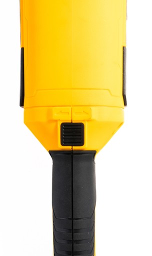 Przycisk umożliwiający obrót został zamontowany na środku rączki, aby pozwolić na szybką zmianę pozycji oraz chwytu podczas pracy
