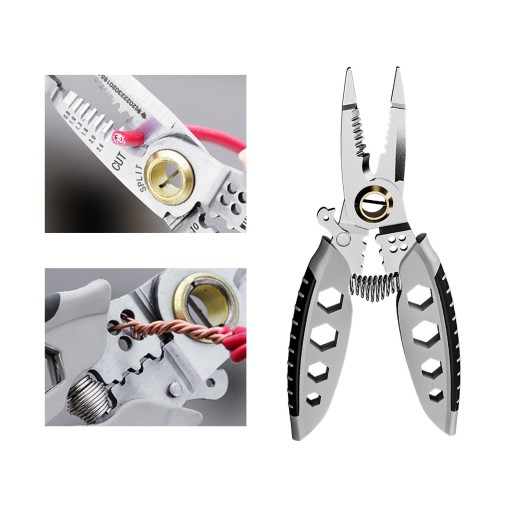 [Wielofunkcyjne] Narzędzie do drutu może być używane do cięcia, łączenia równoległego, nawijania, dzielenia, zaciskania końcówek, zaciskania, wkręcania (wkręcanie, odpowiednie do śrub i nakrętek od 6 mm do 13 mm) oraz cięcia drutu. Oszczędź czas i wysiłek, popraw wydajność, międzynarodowy standardowy otwór, brak uszkodzeń rdzenia drutu.