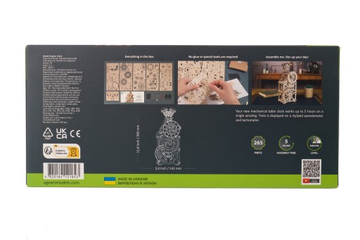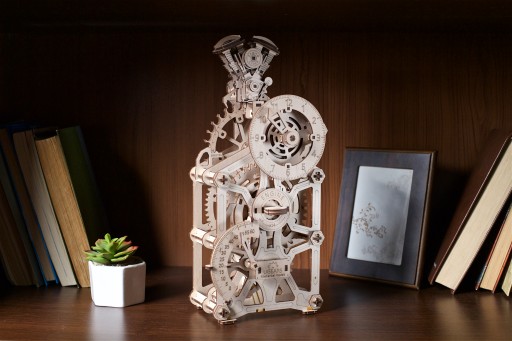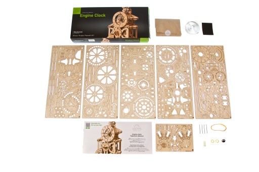 Drewniany Engine Clock DIY jest najnowszym dodatkiem do kolekcji działających zegarów UGEARS, w tym zegara ściennego Aero Clock z wahadłem i zegara stołowego Sky Watcher Tourbillon. Podczas gdy oba te modele są na poziomie “zaawansowanym”, w przypadku zegara Engine Clock staraliśmy się zaprojektować funkcjonalny zegar na “średnim” poziomie trudności, aby więcej hobbystów mogło doświadczyć satysfakcji z budowy własnego funkcjonalnego modelu zegara 3D DIY. Podobnie jak w przypadku wszystkich modeli UGEARS, zegar Engine Clock jest montowany bez użycia kleju i specjalnych narzędzi – wystarczy wycisnąć laserowo wycięte elementy z kompozytowych desek drewnianych o artystycznej jakości wykonania i połączyć je ze sobą. Do każdego zestawu dołączona jest szczegółowa, kolorowa, ilustrowana instrukcja krok po kroku w 11 językach (ukraińskim, angielskim, niemieckim, francuskim, polskim, hiszpańskim, portugalskim, tureckim, włoskim, chińskim i koreańskim), a także papier ścierny i wosk do wygładzenia i nasmarowania wszystkich ruchomych części w celu zapewnienia optymalnego działania.