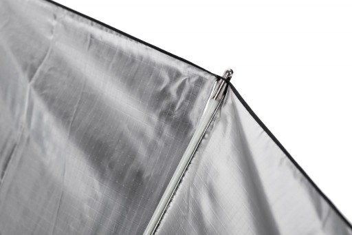 Wewnętrzna powierzchnia Quadralite Deep Space 105 pokryta jest srebrnym, błyszczącym wykończeniem, które odbija światło, nadając mu silny charakter. Ponadto duża powierzchnia parasola składająca się z 16 elementów powoduje, że fotografowany obiekt będzie oświetlony twardo, a cienie będą mocno zarysowane.