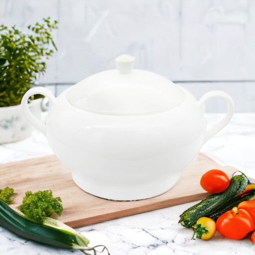 Wykonana z najwyższej jakości ceramiki waza na różnego rodzaju zupy, czy sosy jest produktem niezbędnym w każdym domu. Wyposażona w dwa wygodne uchwyty ułatwiające przenoszenie gorących potraw nabiera praktycznych cech. Dodatkowa pokrywa dołączona w zestawie - sprawia, że gorące zupy dłużej utrzymują ciepło, a także zyskują dodatkową ochronę przed owadami.
