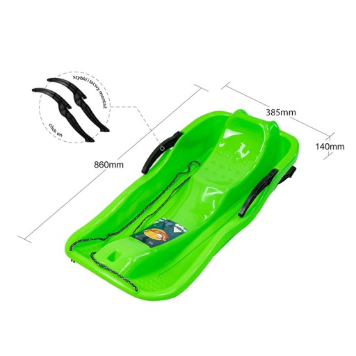 SANKI DZIECIĘCE Z HAMULCEM ŚLIZG PLASTIKOWY SKIPPER ZIELONE