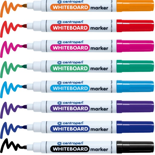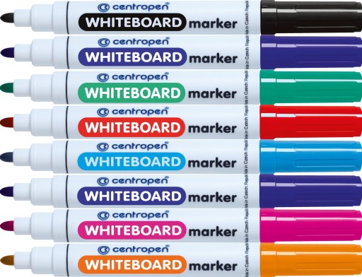• marker suchościeralny Centropen 8559 o nasyconym kolorze, przeznaczony do białych tablic, sprawdza się idealnie w szkołach, gdzie dla dzieci i młodzieży to właśnie kolory świadczą o atrakcyjności wizualnej, a tym samym wzmacniają skuteczność przekazu.