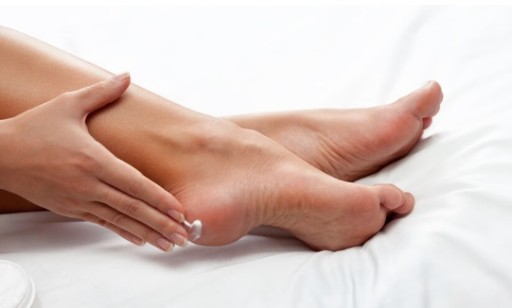 - Na oczyszczoną i osuszoną skórę stóp zaaplikować odpowiednią ilość preparatu