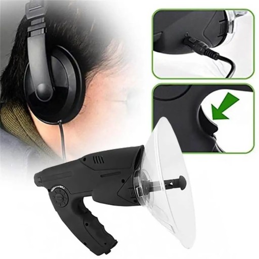 Dla miłośników przyrody idealnym wyborem będzie kierunkowy mikrofon paraboliczny ze słuchawkami i wbudowaną optyką. Idealny do obserwacji, nauki, polowania lub nagrywania różnych odgłosów natury. Nagrania rejestrowane są za pomocą chipa cyfrowego, z którego można je natychmiast odtworzyć lub przenieść na konwencjonalny magnetofon lub komputer. Dzięki zasięgowi ponad 100 metrów możemy słuchać odgłosów natury z wygodnej odległości. Dzięki wbudowanej, wysokowydajnej optyce, zbliżającej się 8 razy, możemy z bliska przyjrzeć się temu, co chcemy zobaczyć.
