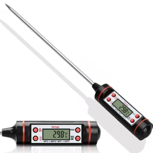 Łatwy oraz czytelny wyświetlacz cyfrowy, pozwoli dokonać pomiaru temperatury od -50°C do 300°C. Tak wysoki zakres pozwoli zmierzyć temperaturę produktów wyjętych prosto z zamrażalki jak i tych bardzo ciepłych. Odpowiednia temperatura ma ogromny wpływ na właściwości, które znajdują się zarówno w herbatach takich jak yerba mate czy smak potraw mięsnych, dlatego ich kontrolowanie jest tak istotne.