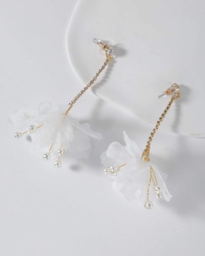 grzebyk ślubny w kolorze złotym z białymi, jedwabnymi kwiatami plus kolczyki do kompletu