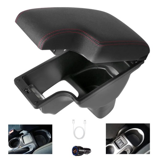 ✅ Zintegrowane porty USB i Podświetlenie LED: Podłokietnik posiada z przodu gniazda USB, dzięki którym można ładować 2 urządzenia na raz (smartfony, tablety itp.). Aby je zasilić należy podłączyć pierwsze gniazdo kablem z fabrycznym gniazdem USB lub z ładowaką do gniazda zapalniczki.