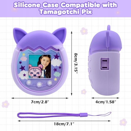 Idealnie kompatybilny: ta silikonowa osłona ochronna jest specjalnie zaprojektowana do interaktywnej wirtualnej maszyny do gry dla zwierząt domowych Tamagotchi Pix. Pakiet zawiera: 1 * silikonowe etui i 1 * smycz. (UWAGA: nie pasuje do Tamagotchi Pix)