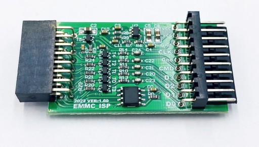 Adapter EMMC-ISP - adapter umożliwiający programowanie w układzie pamięci typu eMMC NAND Flash tj. bez ich demontażu (wylutowywania).