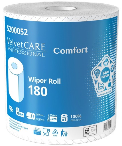CZYŚCIWO PRZEMYSŁOWE VELVET PROFESSIONAL, 2-WARSTWOWE, 720 LISTKÓW, 180M, 1SZT., BIAŁE