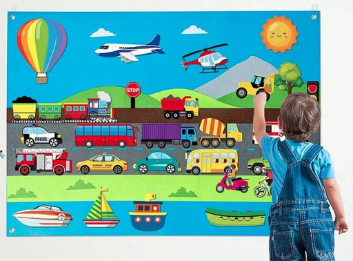 ОБРАЗОВАТЕЛЬНЫЙ КОВРИК ВОЙЛОВАЯ ДОСКА НА ЛИПУЧКЕ ДЛЯ ДЕТЕЙ МОНТЕССОРИ ТРАНСПОРТ