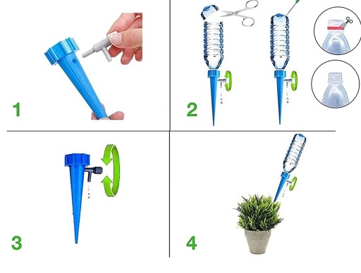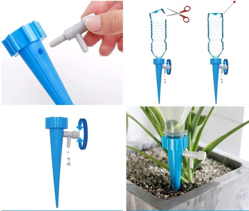 - Umieść butelkę z nawadniaczem w ziemi w sposób stabilny.