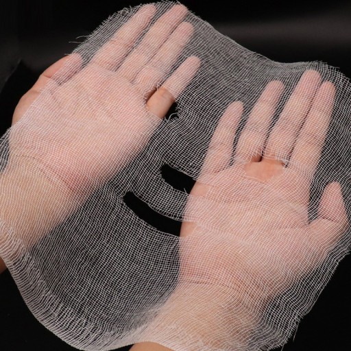-Ta maska gazy do twarzy czuje się komfortowo w dotyku, z drobną siatką, która jest zawilgocona.