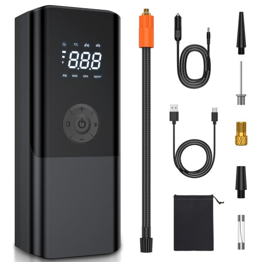 🚗 Funkcja zaprogramowanego ciśnienia w oponach pozwala ustawić żądane ciśnienie w oponach, a kompresor akumulatorowy automatycznie wyłącza się po jego osiągnięciu. Przy 4 jednostkach ciśnienia powietrza, w tym PSI, BAR, KPA i KG/CM2, maksymalne ciśnienie napompowania wynosi 150 PSI/10,3 bara.