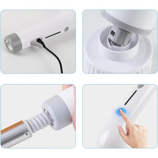 【Regulowany długi, środkowy i krótki uchwyt 3 w 1】 Biorąc pod uwagę codzienne potrzeby, wydłużamy regulowaną długość szorowarki. Długa rączka ma 137 cm, czyli jest dłuższa niż jakakolwiek inna szczoteczka czyszcząca, a krótka rączka ma 30 cm, czyli jest krótsza niż w przypadku jakiejkolwiek innej szorowarki elektrycznej. Dzięki wyjątkowo długiemu i bardzo krótkiemu uchwytowi nasza elektryczna szorowarka jest bardziej wielofunkcyjna i może pokryć wszystkie zakątki domu. Pomóż oczyścić trudno dostępne miejsca bez schylania się i klękania, oszczędzając plecy i kolana.