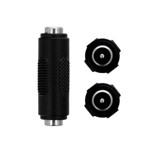Złączka do wtyków kabli zasilających, wyposażona w 2 gniazda żeńskie 5.5 x 2.1 mm.